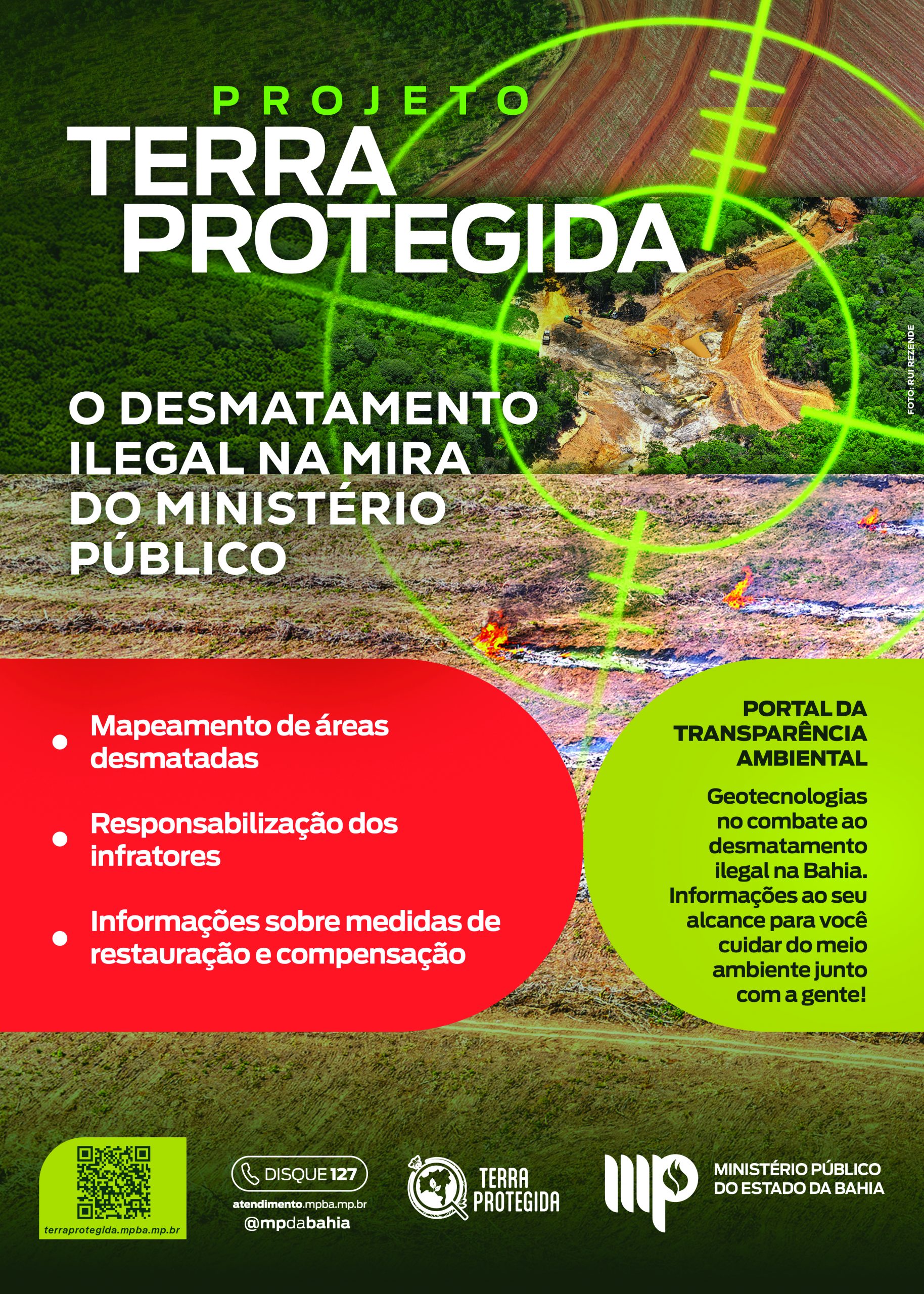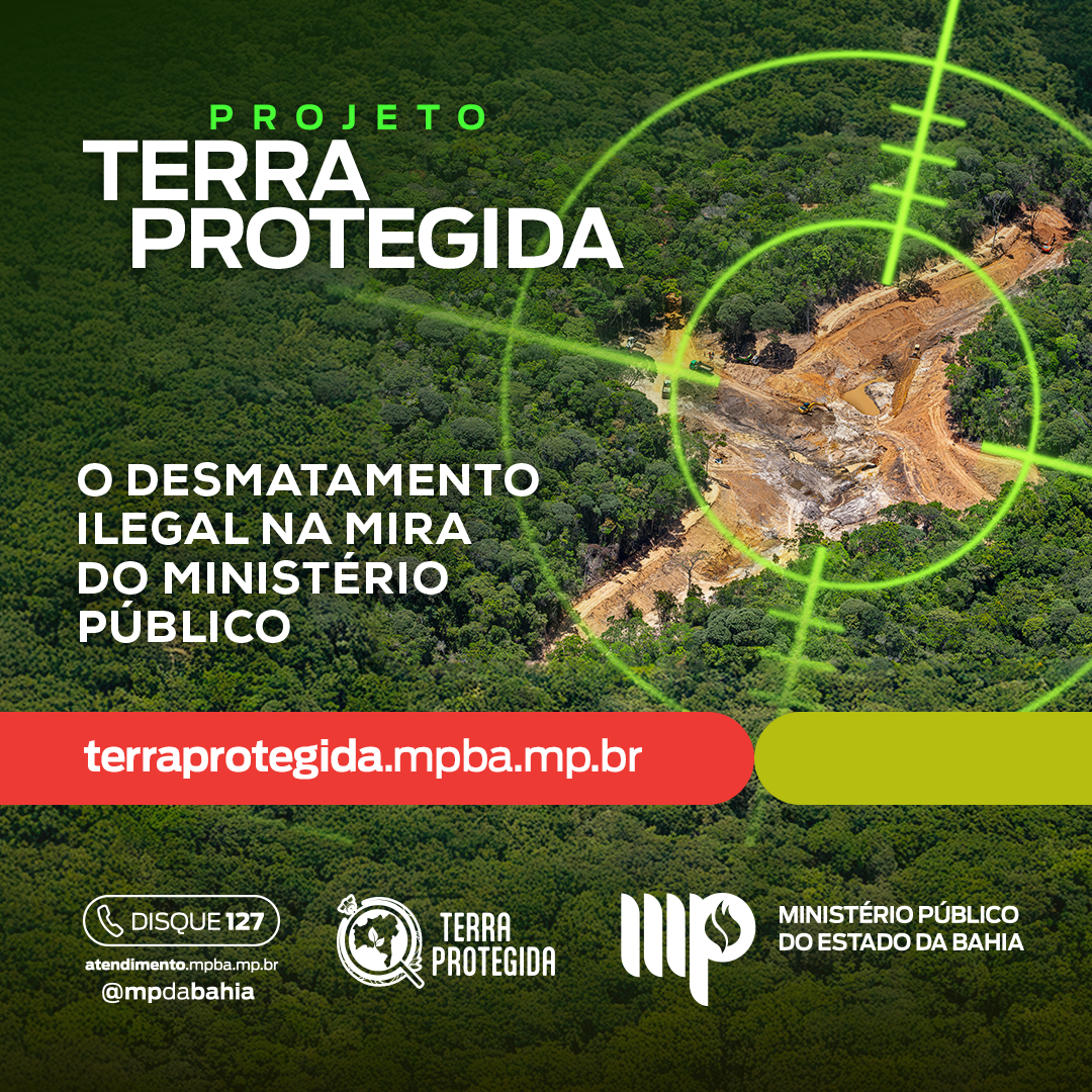 O Projeto Terra Protegida é uma iniciativa estratégica do Ministério Público do Estado da Bahia, coordenada pelo CEAMA/MPBA, que integra inteligência artificial, geotecnologias e automação para combater o desmatamento ilegal, promover a responsabilização dos infratores ambientais e fortalecer a justiça climática. Por meio de um sistema de monitoramento contínuo baseado em alertas geoespaciais, executado pelo CIGEO/CEAMA, o projeto gera provas robustas com cadeia de custódia validada, qualifica a atuação ministerial e viabiliza respostas céleres, técnicas e eficientes. Com parcerias interinstitucionais, capacitação técnica e transparência ativa via Painel Digital, o Terra Protegida transforma a atuação ambiental do MPBA em um modelo replicável, baseado em evidências, inovação e compromisso com a proteção dos biomas baianos. Alinhado aos Objetivos de Desenvolvimento Sustentável (ODS), especialmente os ODS 13 (Ação contra a mudança global do clima), ODS 15 (Vida terrestre) e ODS 16 (Paz, justiça e instituições eficazes), o projeto evidencia seu diferencial ao articular proteção ambiental, inovação tecnológica e fortalecimento institucional como eixos indissociáveis de uma atuação transformadora no sistema de justiça brasileiro, a partir de um novo paradigma de atuação eficiente, eficaz, efetiva e transparente do MPBA.