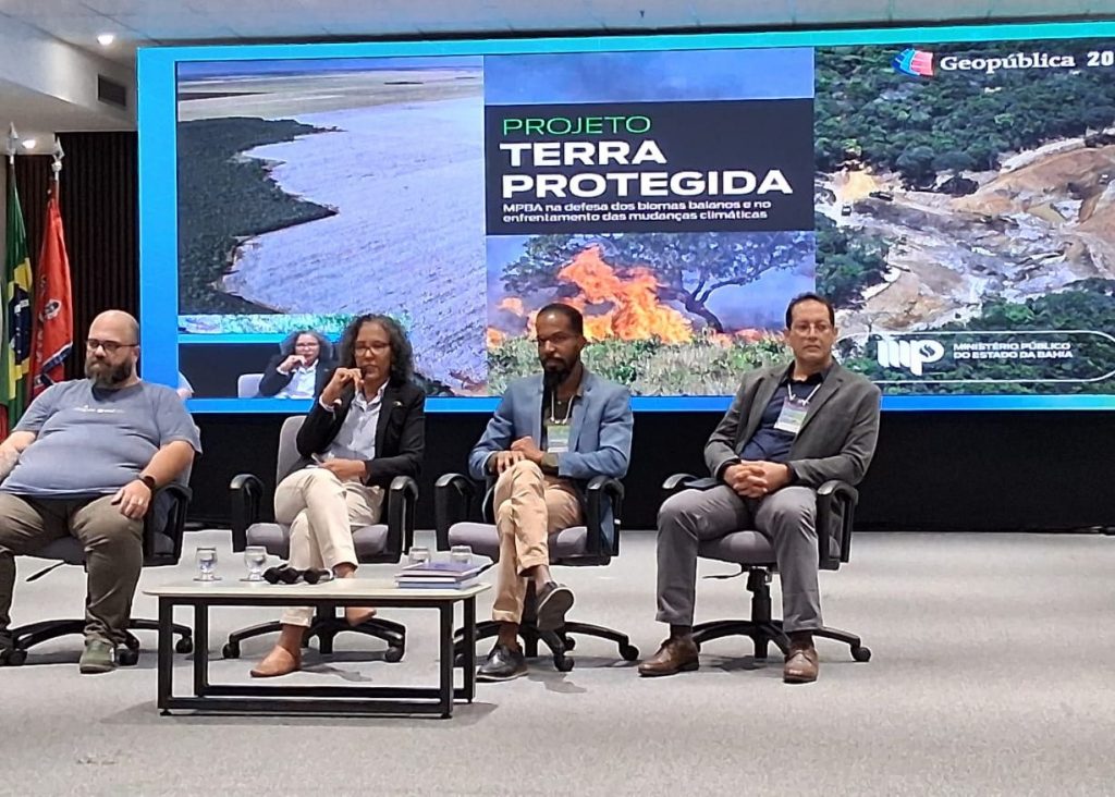 O projeto ‘Terra Protegida’, do Ministério Público da Bahia (MPBA), foi apresentado na quarta-feira, dia 17, no Congresso de Governança e Políticas Públicas – Geopública 2025, realizado no auditório do Tribunal de Justiça da Bahia (TJBA), em Salvador. Recentemente premiada pelo Conselho Nacional do Ministério Público (CNMP) em 2025, a iniciativa foi evidenciada como exemplo de atuação inovadora no enfrentamento ao desmatamento ilegal e às mudanças climáticas, integrando inteligência artificial, automação de processos e geotecnologias às ações ministeriais.